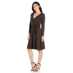 Get ready to hit the town with this women’s faux wrap dress by 24Seven Comfort Apparel.